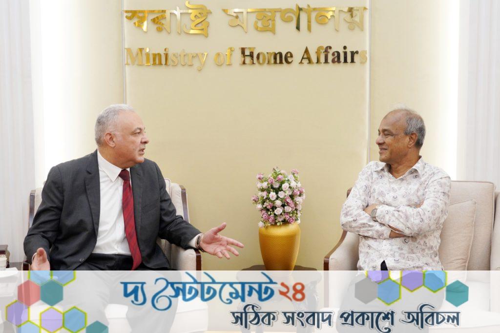 উপদেষ্টার সঙ্গে আজ দুপুরে বাংলাদেশ সচিবালয়ে স্বরাষ্ট্র মন্ত্রণালয়ে তাঁর অফিসকক্ষে বাংলাদেশে নিযুক্ত মিশরের রাষ্ট্রদূত ওমর মহি এলদিন আহমেদ ফাহমি (Omar Mohie Eldin Ahmed Fahmy)-এর সৌজন্য সাক্ষাৎকালে তিনি এ কথা জানান।