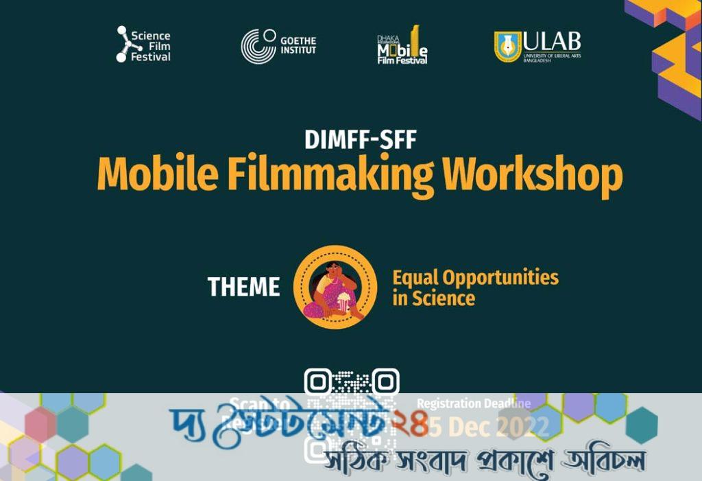 আগামী ২৩ ডিসেম্বর থেকে ঢাকা আন্তর্জাতিক চলচ্চিত্র উৎসব (ডিআইএমএফএফ) এবং বিজ্ঞান চলচ্চিত্র উৎসবের উদ্যোগে যৌথভাবে আয়োজিত হতে যাচ্ছে চারদিনব্যাপী মোবাইল চলচ্চিত্র নির্মাণ কর্মশালা।