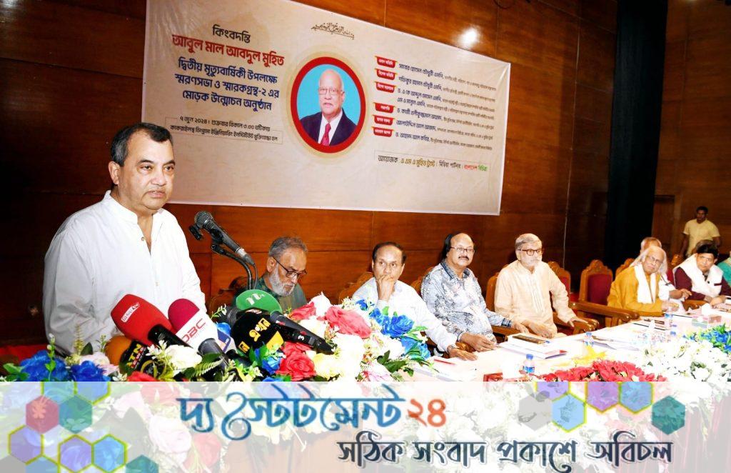 শুক্রবার (৭জুন) সন্ধ্যায় কাকরাইলস্থ ডিপ্লোমা ইঞ্জিনিয়ারিং ইনস্টিটিউটের মুক্তিযোদ্ধা হলে কিংবদন্তি আবুল মাল আবদুল মুহিতের দ্বিতীয় মৃত্যুবার্ষিকী উপলক্ষ্যে স্মরণসভা ও স্মারকগ্রন্থ-২ এর মোড়ক উন্মোচন অনুষ্ঠানে প্রধান অতিথির বক্তব্যে পরিবেশমন্ত্রী এসব কথা বলেন।